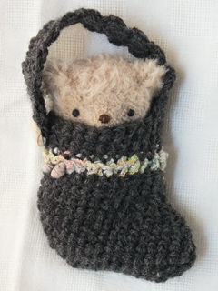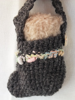 こげ茶色の靴下に入ったおチビさん。 誕生日は11月17日