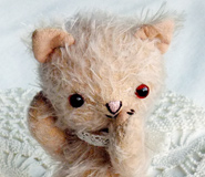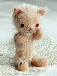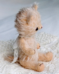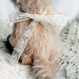 優しいピンクオレンジ色の女の子。首にレースのリボンを巻いて。 誕生日は2月18日