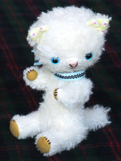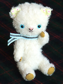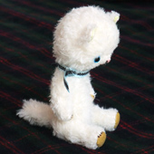 青い目が印象的なシロネコちゃん。 リネンのリボンも色を合わせて。耳の内側は花柄の布を使用しています。 誕生日は5月4日