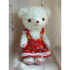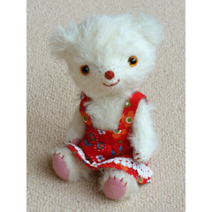 真っ白なアルパカを使った優しいさわり心地の女の子です。でもどことなくお転婆そうなお顔でしょ?